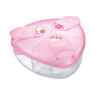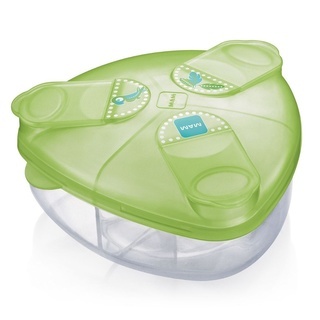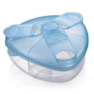 Ein Must-have für alle Mamas und Papas, die neben oder anstelle des Stillens auf Ersatzmilch setzen! Denn das Milchpulver trinkfertig zu bekommen, muss manchmal einfach besser jetzt als gleich klappen. Zuhause kannst Du die Pulvermenge für die nächsten 3 Fläschchen bei Gelegenheit schonmal vorportionieren und wenn der Hunger erstmal riesengroß ist, wird die Wartezeit für Dein Kleine etwas kürzer. Doch vor allem für unterwegs wirst Du dieses kleine Teil garantiert nicht mehr hergeben wollen. Mehrere Portionen dabei, ohne viel Platz in der Wickeltasche wegzunehmen, und dank der Ausschütthilfe landet das Pulver dann auch garantiert in der Flasche und nicht daneben. So lange seit ihr gar nicht unterwegs? Dann kann hier nebenbei auch ein Schnuller oder Sauger einen Platz finden.