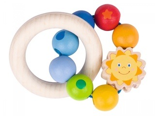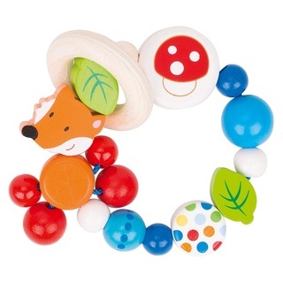 KindgerechtDieser Greifling ist perfekt für kleine Kinderhände. Mein Sohn ist fast 4 Monate alt und spielt gerne damit. Da es aus speichelfestem Holz ist, habe ich keine Bedenken, wenn er daran rum"kaut". Dass der Greifling klackert beim Spielen findet er ganz interessant. Kann ich nur jedem empfehlen
