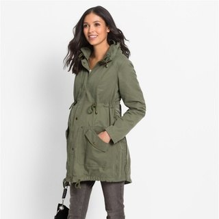Umstandsparka mit Baby-Trageeinsatz und Jersey-Futter in grün: Der leichte Umstandsmoden Parka mit grauem Jersey Futter ist ein praktischer Begleiter für das Frühjahr. Mit dem Baby-Einsatz ist Ihr Baby vor Wind und Wetter geschützt. Auch schon vor der Geburt ist die praktische Jacke in allen Schwangerschaftsmonaten tragbar, da sie sich durch Reißverschlüsse an der Seite erweitern lässt. Vorne kann die Schwangerschaftsjacke mit Reißverschluss und Knöpfen geschlossen werden, in der Taille und am Bund ist sie mit Tunnelzug und Bindeband weitenregulierbar. Der Trage-Einsatz dient nur zum Schutz des Babys und hat keine Tragefunktion!