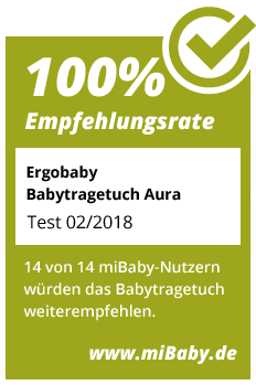 100% Empfehlungsrate - die miBaby-Mamis haben das neue Tragetuch Aura von Ergobaby getestet und waren begeistert: Durch den besonders weichen, anschmiegsamen Stoff ist das Tuch nicht nur ideal für Neugeborene, sondern lässt sich durch seine elastischen Eigenschaften besonders gut binden. Markierungen zum Binden sind vor allem etwas unsicheren Trage-Neulingen eine große Hilfe. Der Viskose-Stoff aus Eukalyptus- und Akazienfasern ist besonders leicht und atmungsaktiv, so dass auch das Tragen bei sommerlichen Temperaturen Spaß macht. Waschbar bei 30 Grad.
