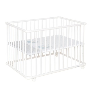 Der riesige Vorteil an diesem kleineren, rechteckigen Modell: Es passt durch die meisten Türrahmen mit Standardmaßen! Dank der angebrachten Rollen kannst Du Dein Kleines bei Bedarf also auch problemlos von Raum zu Raum schieben.