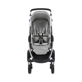 Der perfekte Buggy für große Abenteuer: Das Modell Stella von MAXI-COSI überzeugt mit kompakten Maßen und stoßabsorbierenden Outdoor-Reifen. Altersempfehlung: mit separat erhältlicher Babyschale ab der Geburt bis 3,5 Jahre Belastbarkeit: bis 15 kg Verwendung: universell einsetzbar, auch geländetauglich Klappmaß: 47,5(L) x 55(B) x 86,5(H) cm Gewicht: 14,4 kg Räder: stoßabsorbierende, schaumgefüllte Outdoor-Reifen, Vorderräder schwenk- und feststellbar Lieferumfang: Buggy, Verdeck, Einkaufskorb, Regenschutz, Adapter für Babyschalen von MAXI-COSI Funktionen: 5-Punkt-Hosenträger-Gurtsystem, bis zur Liegeposition verstellbare Rückenlehne, verstellbare Fußstütze, umkehrbare Sitzeinheit, höhenverstellbarer Schiebebügel, abnehmbarer Spielbügel, zentrales Bremssystem Sicherheit & Komfort Der weich gepolsterte Sitz des Buggys Stella von MAXI-COSI lädt Kinder bis dreieinhalb Jahre zu vergnügten Spazierfahrten ein. Die bis in die Liegeposition verstellbare Rückenlehne bietet ihnen dabei stets die Möglichkeit sich zurückzulehnen und zu entspannen. Die verstellbare Fußstütze lässt sich entsprechend anpassen. So ist Gemütlichkeit auf jedem Ausflug garantiert. Je nach Alter oder Laune des Nachwuchses kann der Sitz in oder entgegen der Fahrtrichtung montiert werden. So können die Kleinen wahlweise ihre Umgebung bestaunen oder Sicherheit bei den Großen suchen. Bei beiden Varianten sorgen der praktische 5-Punkt-Hosenträgergurt und der abnehmbare Spielbügel zuverlässig für die Sicherheit des Kindes. Gestell & Fahrwerk Das Gestell des Buggys überzeugt im kompakten Design mit einer Breite von gerade mal 55 Zentimetern. Supermarktgänge oder enge Altstadtgassen stellen so kaum eine Herausforderung für Stella dar. Die schwenkbaren Vorderräder meistern auch enge Kurven ohne Probleme. Für einen ruhigen Lauf auf sämtlichen Untergründen ist dank der stoßabsorbierenden und schaumgefüllten Outdoor-Bereifung gesorgt. Um den Rücken der Erwachsenen zu entlasten, kann der Schieber in der Höhe verstellt und das Gestell ohne Bücken zusammengeklappt werden. In zusammengefaltetem Zustand steht das Gestell aufrecht und erleichtert so das Verstauen oder den Transport. Lieferumfang Zum Lieferumfang gehören neben Gestell und Sitzeinheit auch das Verdeck, ein praktischer Regenschutz und der bis fünf Kilogramm belastbare Einkaufskorb. Ein Kinderwagenaufsatz, der eine Nutzung des Buggys ab Geburt ermöglicht, ist separat erhältlich. Mit einer ebenfalls separat erhältlichen Babyschale kombiniert ist der Buggy Stella als flexibles Travelsystem nutzbar. Ein Adapter für MAXI-COSI Babyschalen ist bereits im Lieferumfang enthalten.