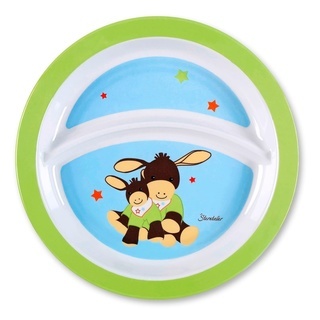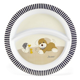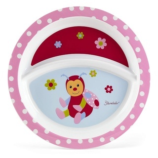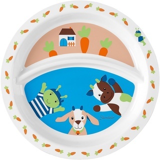 Mit dem Teller „Wieslinge“ von Sterntaler macht selbstständiges Essen und Essen lernen viel Freude und gleich doppelt Spaß! Zu sehen sind Kuh Klecks, Grashüpfer Gustav und Ziege Zottel. Mit dem rutschfesten Unterteil ist außerdem Standsicherheit gewährleistet.
