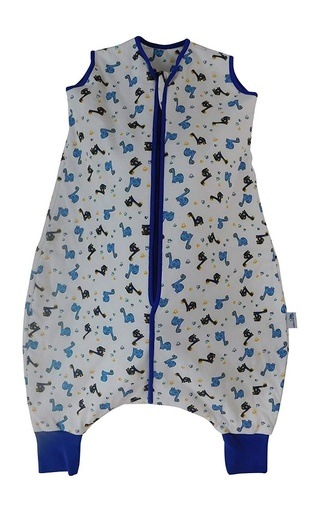 Praktischer Schlafsack mit Füßen aus 100% Jersey-Baumwolle. Leicht gefüttert in 1.0 Tog für den Sommer und die Übergangszeit bei Raumtemperaturen von 18 bis 24 Grad.
