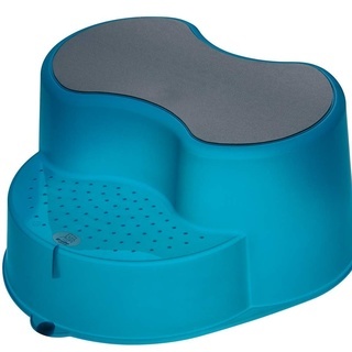 Der Kinderschemel von Rotho hat zwei Stufen, was ihn von anderen unterscheidet und auch den Kleinsten ein sicheres Aufsteigen ermöglicht. Drei Gummifüße machen ihn rutschfest und sicher. Das schlichte Design finde ich persönlich sehr ansprechend.