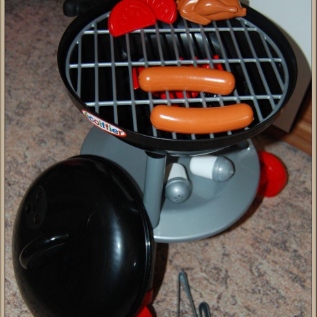 Auf zur lustigen Grillparty mit Deinen Freunden! Der detailgetreue Barbecue Grill mit Grillrost, Grillkohle, Zange, Spiellebensmitteln, Pfeffer- und Salzstreuer sorgt für jede Menge Spielspaß. Grillen wie Papa, aber ohne dass du dich durch heiße Kohle verletzen kannst. Das schwarze Ecoiffier-Modell ist einem echten Kugelgrill nachempfunden und mit einer abnehmbaren Haube gestaltet. Wendig und leicht lässt er sich dank der zwei Räder auch schon von kleinen Grillmeistern leicht handhaben.