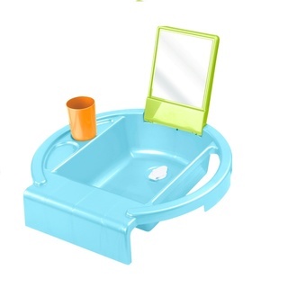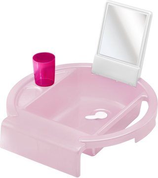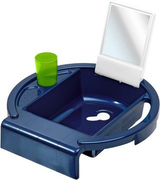 Rotho Kinderwaschbecken Kiddy WashSo macht Waschen richtig Spaß!Spielend die eigene Körperpflege erlernen.Kinder wollen schon sehr früh Selbständigkeit erlernen, auch bei der Körperpflege. Dies ist aber am normalen Waschbecken aufgrund der Höhe oft nicht möglich. Mit dem Kiddy wash wird das Erlernen der Körperpflege zum Kinderspiel. Durch die einfache Montage am Badewannenrand erfährt das Kleinkind in idealer Höhe den spielerischen Umgang mit der eigenen Körperpflege.passend für alle gängigen Badewannen mit einer Wannenrandbreite bis zu 8 cm der integrierte Spiegel mit Spiegelfolie ist unzerbrechlichDurch den integrierten Ablaufstopfen kann das Wasser bequem in der Wanne abgelassen werden Integrierte Seifenablage Haltegirff für Waschlappen oder Handtuch Optimal geeignet für das Erlernen der selbständigen Körperpflege Waschbecken in kindgerechter Höhe Lieferung umfasst Kiddy Wash, Spiegel, Zahnputzbecher Der hochwertige Kunststoff ermöglicht eine lange Haltbarkeit Das Kiddy Wash kann einfach und sicher an der Badewanne befestigt werden! Made in Germany einfach mit warmem Seifenwasser zureinigen Material: PP Polypropylene Maße ca.: Höhe 10.2 cm, Durchmesser 39 cm geeignet für Kinder ab 12