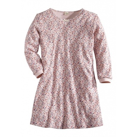 Schlafen wir Dornröschen: Zahlreiche Blümchen begleiten kleine Prinzessinnen in wunderbare Traumwelten. Besonders weiche Rippware. Durch die 3/4 Armlänge optimal auch in kühleren Sommernächten. Baumwollschleifchen am Halssaum, feine Rippbündchen am Armsaum. Bio-Feinripp 3/4 Ärmel Romantischer Blumendruck 100% Baumwolle, kbA.