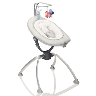 Anders als Standard-Babywippen lässt sich die Babymoov Swoon Up auf eine Höhe von 55 cm oder 75 cm einstellen, was ungefähr Sofa- und Tischhöhe entspricht. So können Babys auch in ihrer Wippe viel aktiver am Familienlieben teilnehmen. Außerdem lässt sich der Sitz um 360° drehen und sorgt so für eine natürliche Schaukelbewegung. Mit einer Hand lassen sich die Rückenlehne dreistufig und der Sitz zweistufig verstellen sowie die komplette Wippe unkompliziert zusammenklappen.